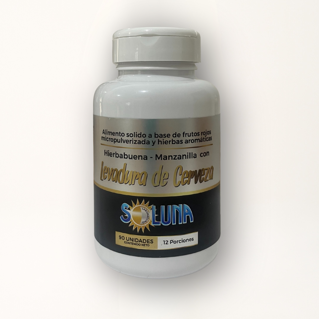 Fruta micropulverizada de frutos rojos (Mora, cereza, fresa). Mezcla de hierbas aromáticas (Hierbabuena, manzanilla), Levadura de cerveza, hidróxido de magnesio, estabilizante (CMC), Anticompactante (Dióxido de silicio), estearato de Magnesio, conservante (Benzoato de Sodio).